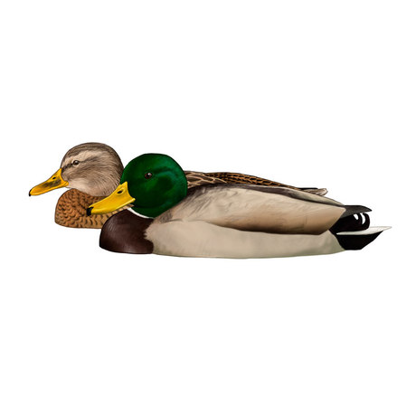 Cabeza y pico grandes, cola corta y patas naranja. Espejuelo característico de color azul bordeado de blanco bajo el ala. En periodo nupcial el macho tiene la cabeza verde iridiscente, collar blanco, pecho marrón y partes inferiores claras con el pico amarillo apagado. La hembra es toda ella de un marrón moteado, con la frente más oscura y el pico sin un color uniforme y más apagado. Los jóvenes son parecidos a la hembra.