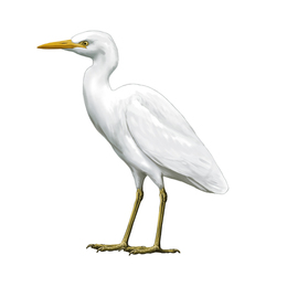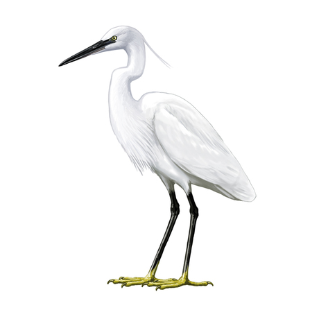 Ocell esvelt i elegant, amb les potes negres i els peus grocs brillants. És completament blanc amb el bec llarg, recte i afilat, de color negre. Té el plomatge facial de color blau verdós i l’iris groc. En període nupcial mostra plomes ornamentals al clatell, el pit i el dors.